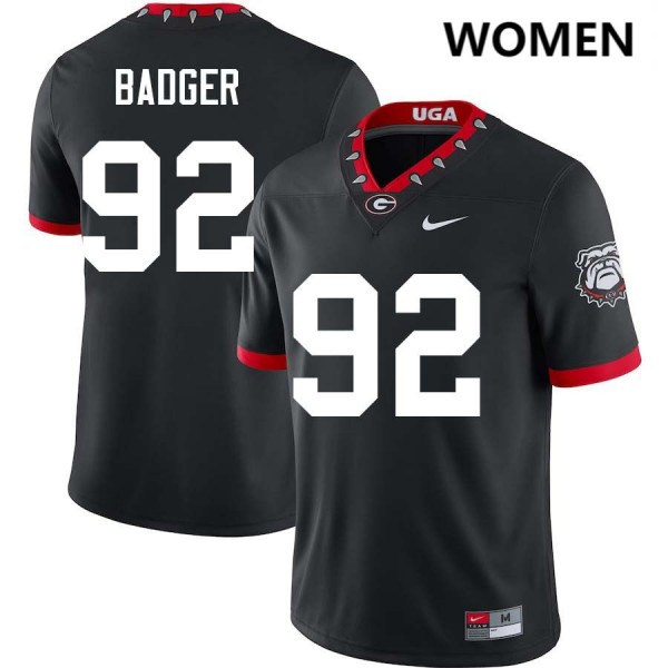 Women #92 University of Georgia Liam Badger College Football Jerseys - 100th Anniversary Black